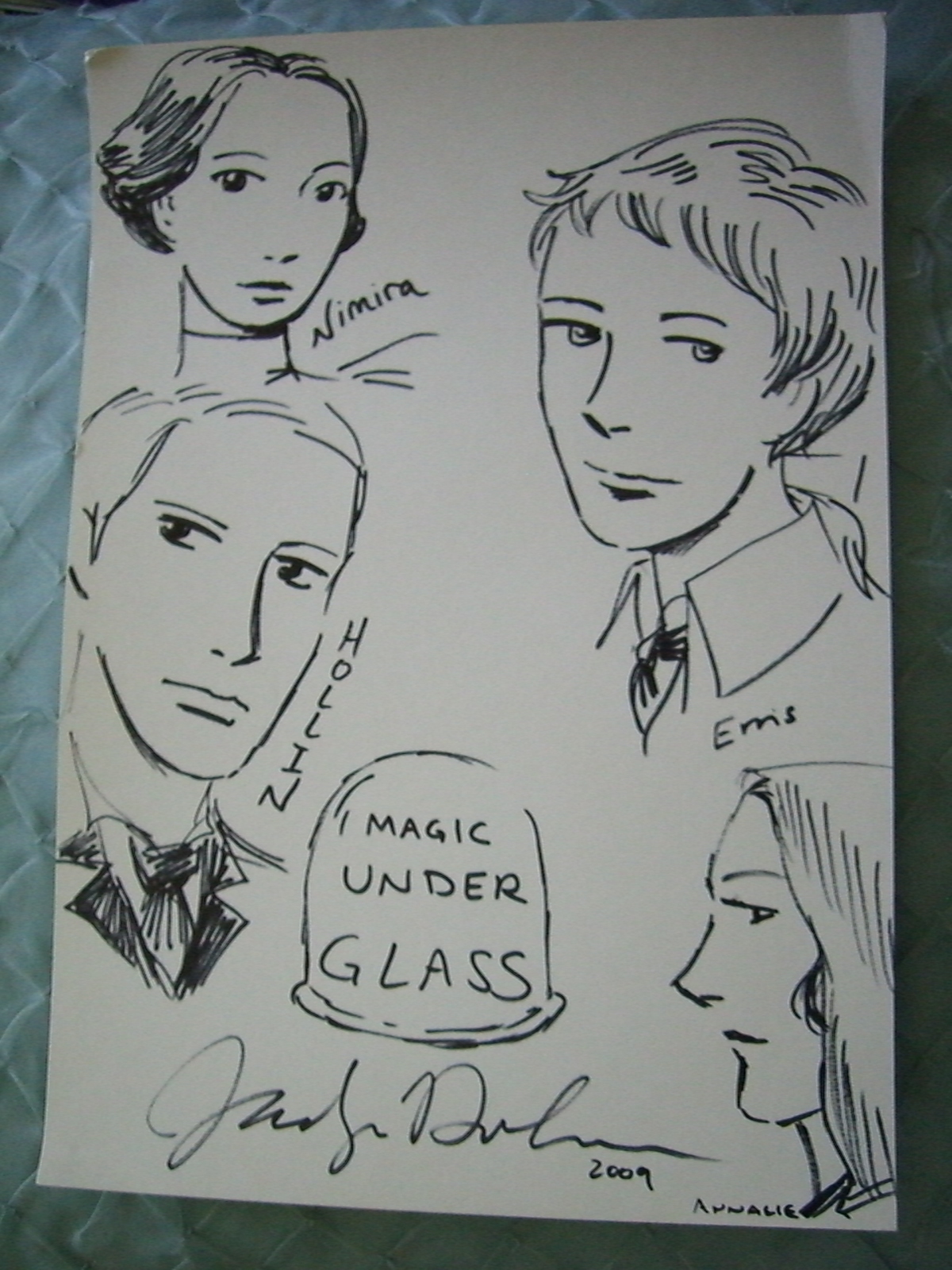 On to more awesomeness.. I’ve had a good December in terms of luck, and I won some books I was coveting (I’ll post about those as I review them), but the prize package above from Jaclyn Dolamore far exceeded my expectations. I got a bookplate with the UK cover, and on the other side are character sketches by the author (really nicely done), the book (signed), and signed bookmarks and a mixed CD (which I’m listening to now). Clicking each of the thumbnails above should lead to the pictures. When I first opened this package, my reaction was WOW, this must have taken a lot of work! I’m thrilled. Thank you.