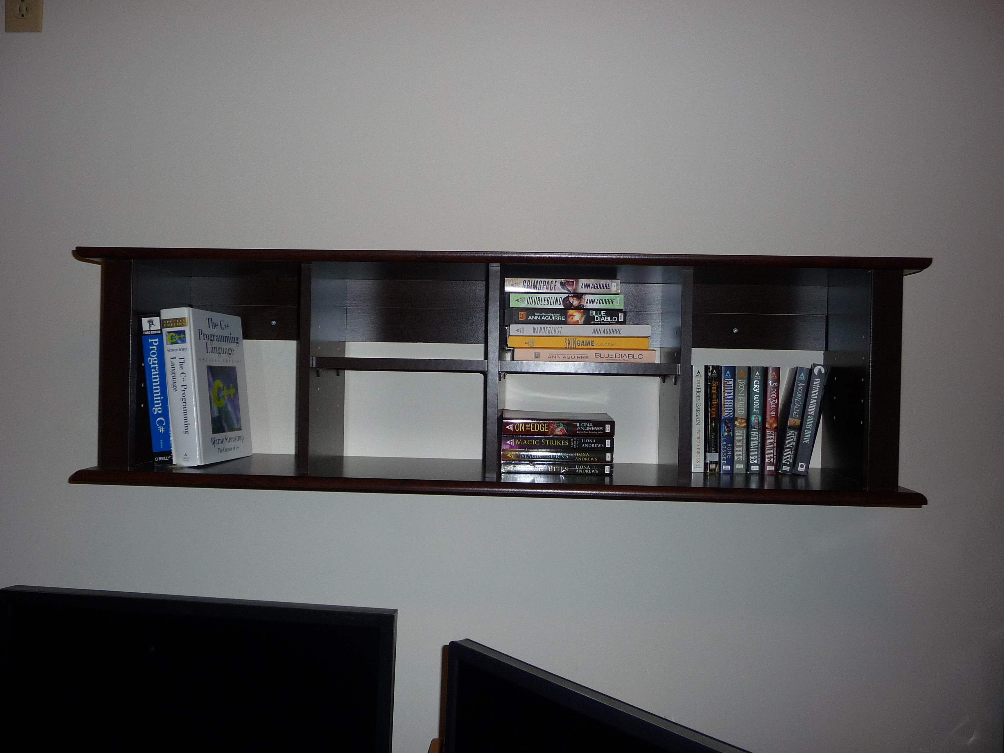 The finished product. One half of the shelf is mine, other half is The Mister’s. Guess which (click for humongous).