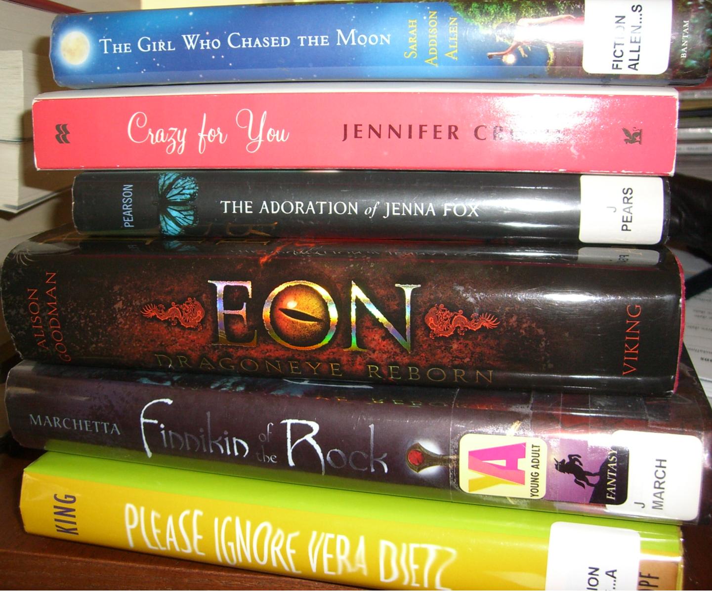 3. *stares* I’m so jealous!! That is an AMAZING bargain! I really want to read THE ADORATION OF JENNA FOX and EON as well — they look really good and have been on my radar forever. I’m also super jealous that you find a hardcover of the FINNIKIN for so cheap. I haven’t read that yet either, but I’ve fallen in love with Marchetta this past month so I definitely plan on it. PLEASE IGNORE VERA DIETZ I *have* read and absolutely loved. Can’t wait to see your thoughts on it when you get around to reading it. 🙂