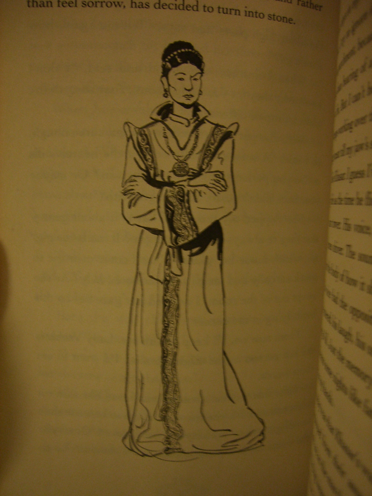 I also loved that this story had a Mongolian influence. The Eight Realms and the Gods as Dashti knows them are clearly from Hale’s imagination, but the clothing, the animals and landscape, and many other details are very Asian. There are also a lot of charming drawings that pepper the text which underline that these characters have Asian features. I really enjoyed reading a story that was so steeped in this sense of place.