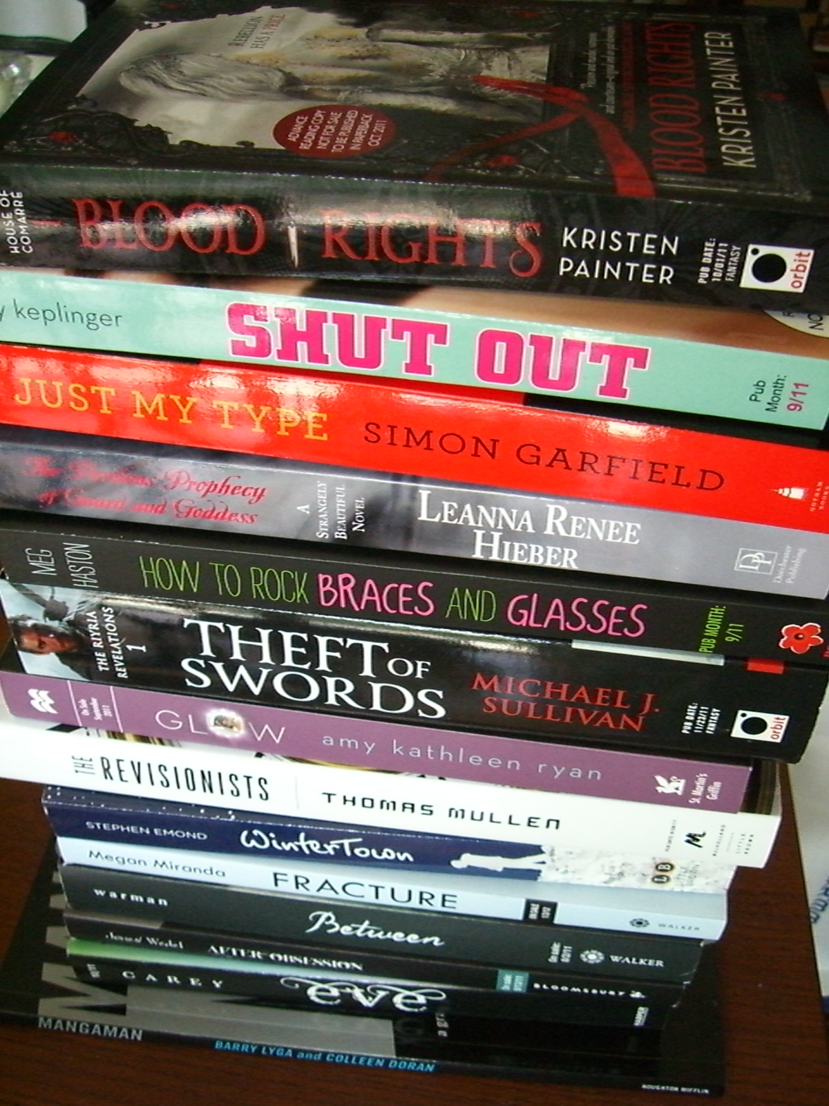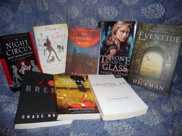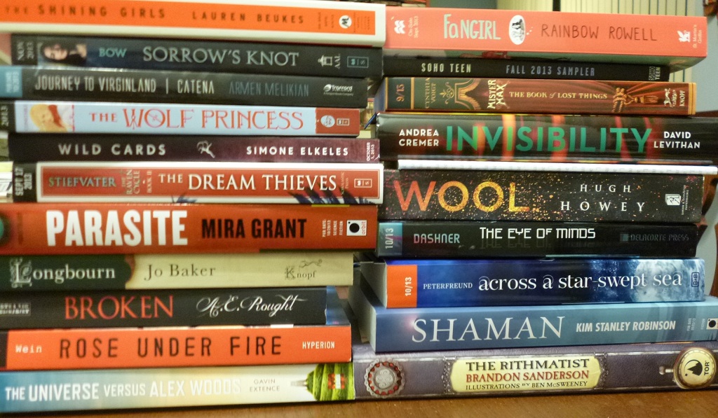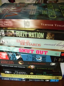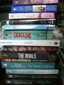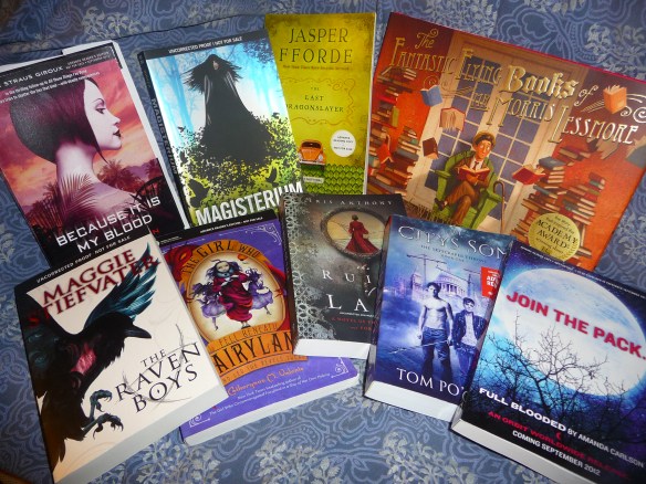 Anyway, here’s my haul. I tried, but I have a hard time saying “no thanks” when someone hands me a book. This means there’s a couple of YAs in here that I’m debating if I’ll keep because I don’t really know what they’re about (The Wolf Princess and Catena in case you were wondering). The total is: 19 books, 1 sampler book, 1 novella.