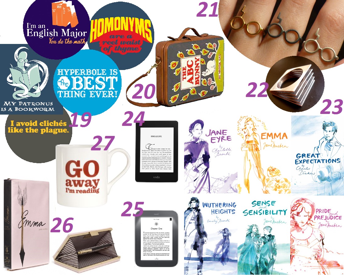 Don’t worry, I’m still around! The reading has been going at a glacial pace (sigh), but I’ve been watching A LOT of Christmas movies and trying to find the right gifts for everyone on my list. Which led me to spend time this weekend scouring the internet to create another Bookish Gifts post. Hope you enjoy! If you’re new here and would like more of this sort of thing, I have three other Bookish Gifts posts, plus Jane Austen, Mystery, and Dystopian editioned ones. 🙂 (Click the images for larger versions).